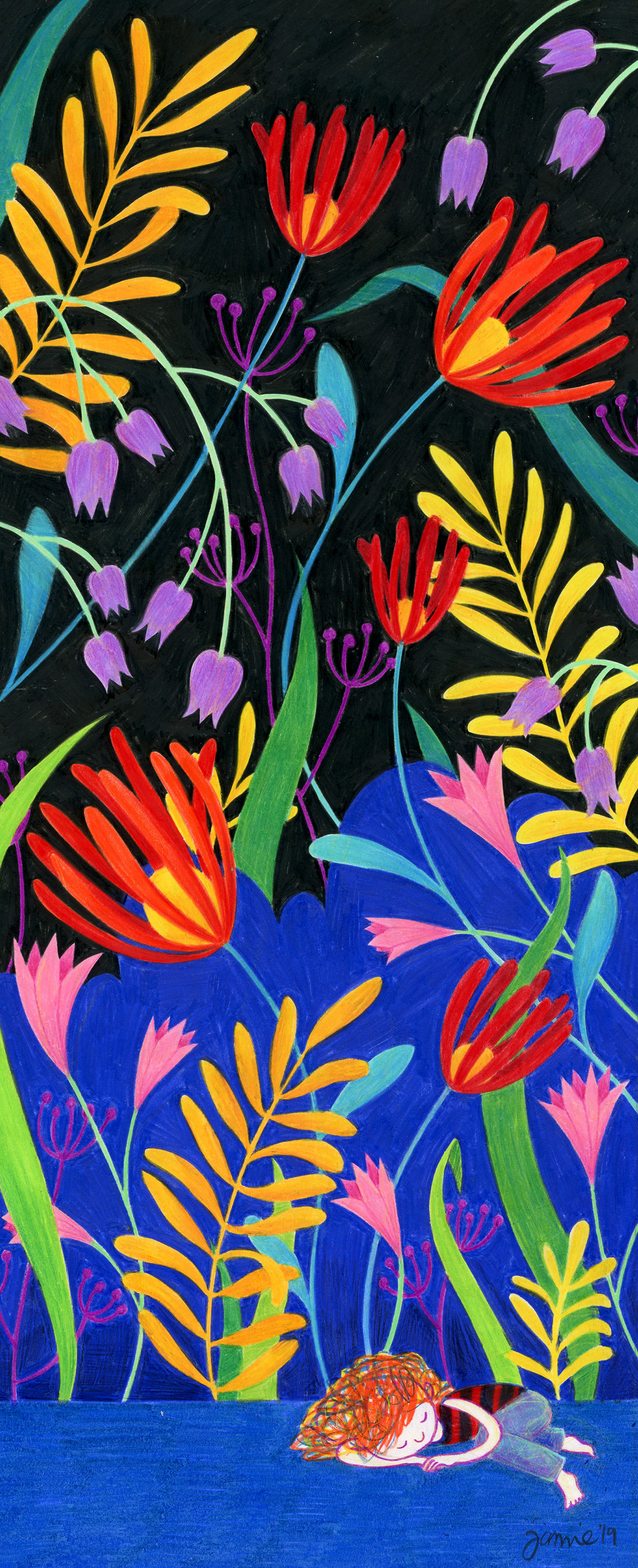 Drawings inspired by both real and made-up flowers. I imagine getting lost in a garden, and how wonderful that would be.
