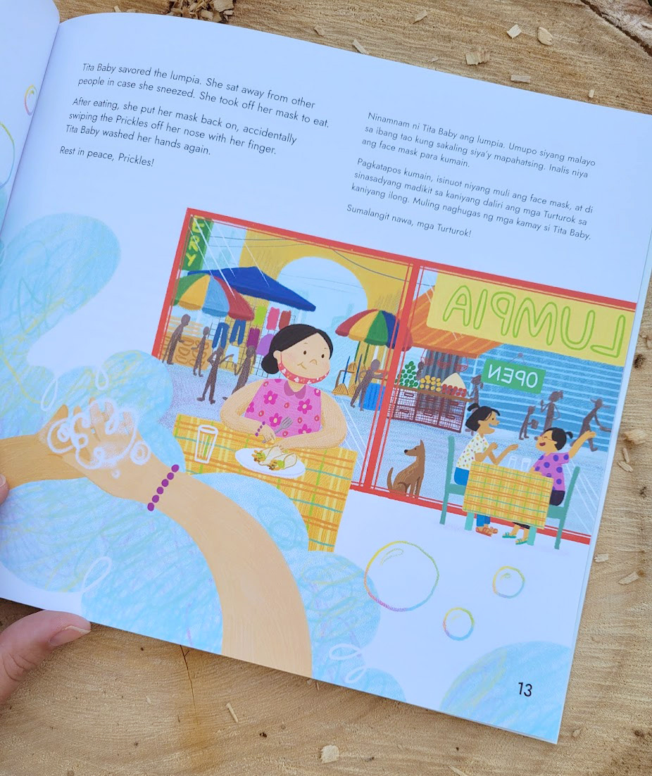 In clear language, science writer and award-winning children's book author Natasha Vizcarra narrates how Tita Baby catches the virus, quarantines herself, and is vaccinated. By peeling back the science behind Tita Baby's story, Vizcarra sensibly explains how virus spread, how they affect us, and how we can keep each other safe and healthy. Jamie Bauza's lively illustrations bring the COVID story into vivid focus for teachers, parents and youngsters alike."